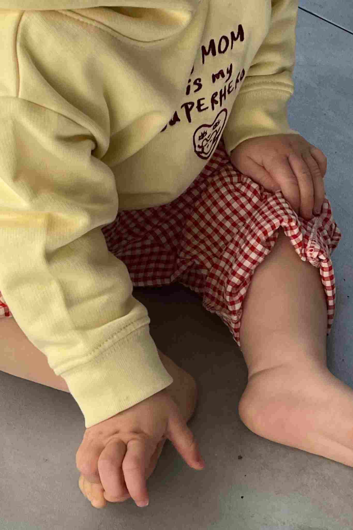 Yuna ist 13 Monate alt, 78cm groß und trägt Größe 12-18m.