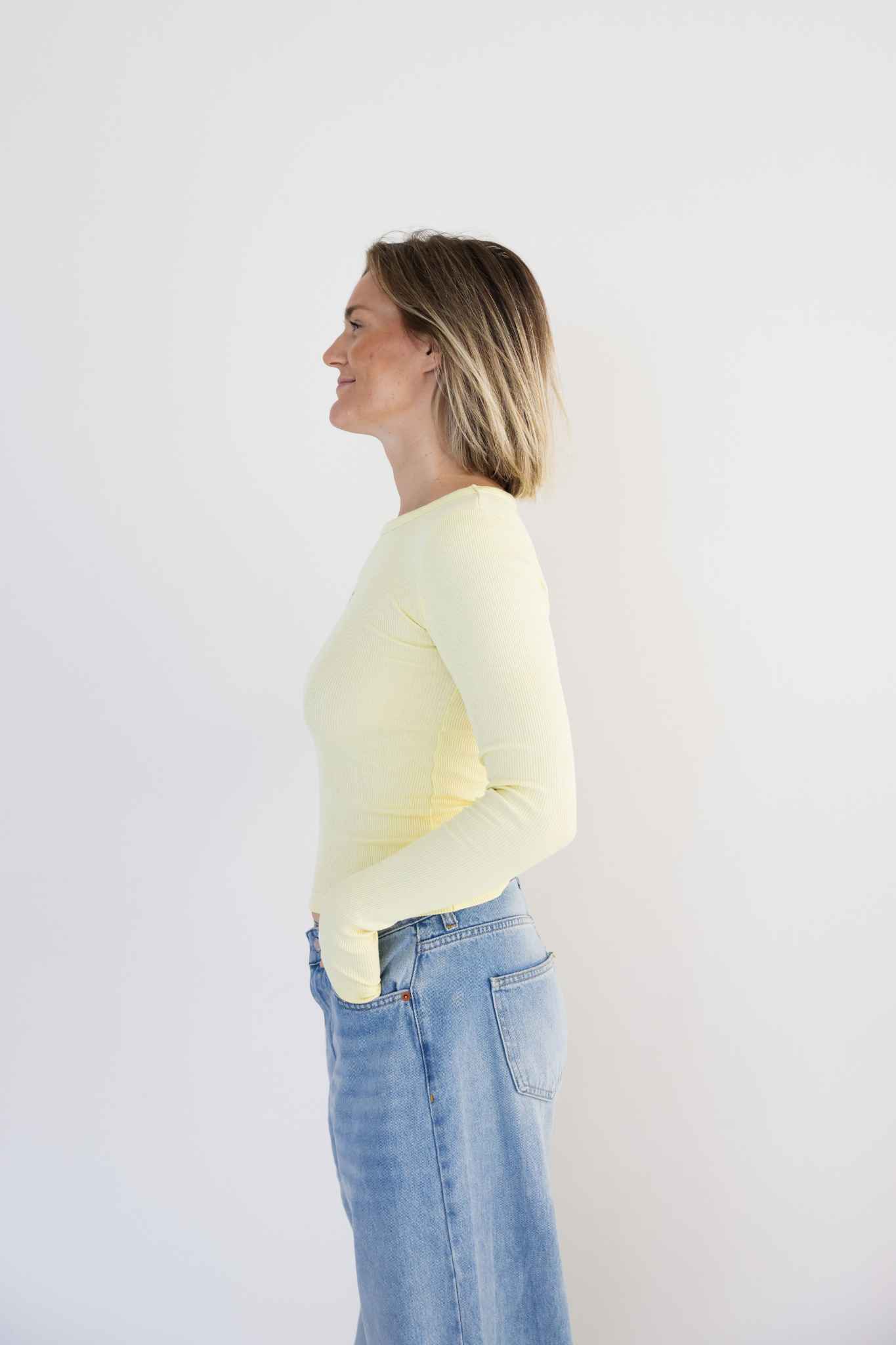 Basic, clean und hochwertig: Unser THE BEST Rib Longsleeve gibt es jetzt passend zum Sommer in der Trend Farbe Butter Yellow! Das Longsleeve ist aus einem superweichen Stoff, hat extra lange Ärmel für einen besonderen Look und überzeugt durch das schöne Fabric und dem körpernahen Fit!