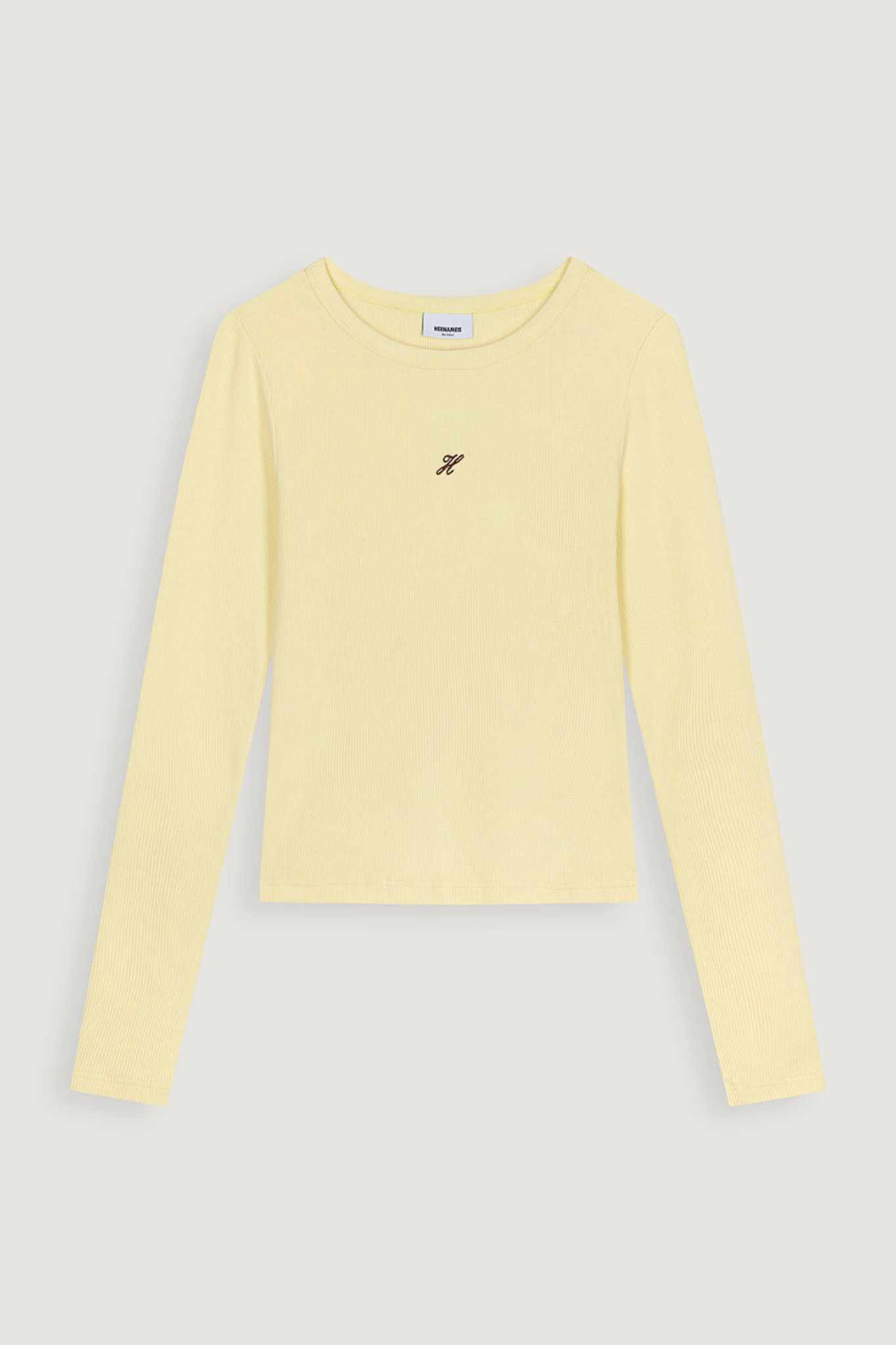 • Rib Longsleeve mit dunkelbraunem Logo ‘H’ Embroidery