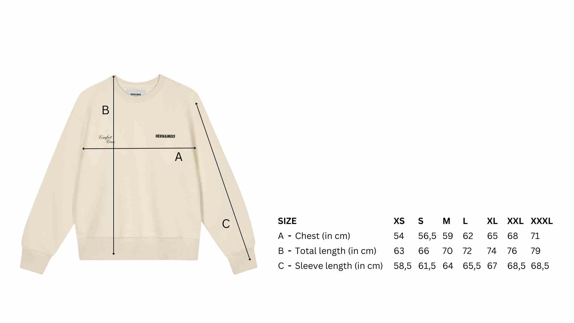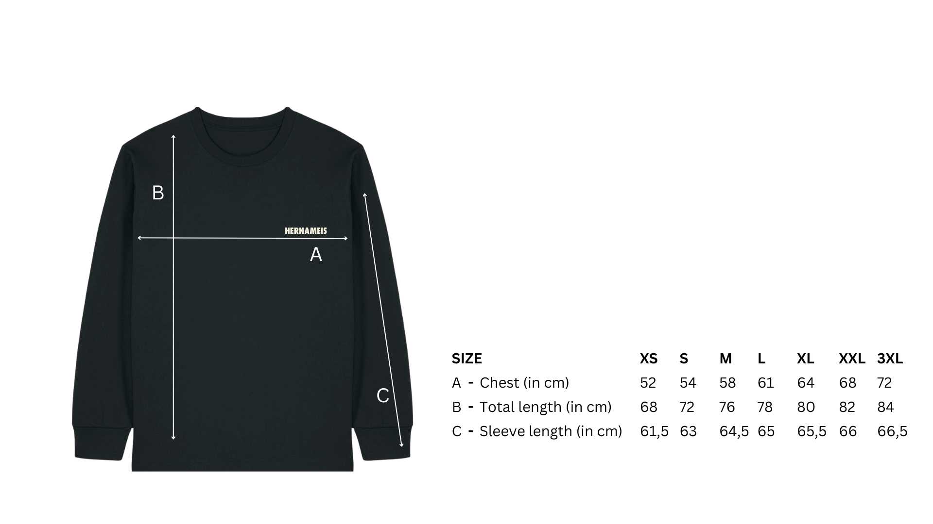 Uns liegt es am Herzen, Retouren so gut es geht zu vermeiden. Um Euch vor der Bestellung eines HERNAMEIS Pieces bestmöglich an die Hand zu nehmen und Euch Hilfestellung bei der Größenfindung zu geben, findet Ihr hier eine Übersicht unserer Styles, inklusive ihrer Besonderheiten mit den entsprechenden Maßtabellen.